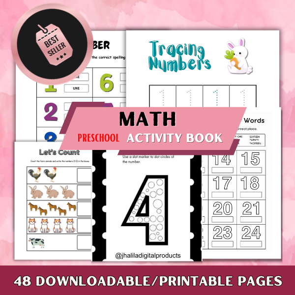 This delightful 48-page math activity book is designed specifically for preschoolers. Packed with engaging and educational activities, it’s perfect for little learners to explore fundamental math concepts in a fun and interactive way. From counting to basic shapes, this soft copy book offers a variety of exercises that promote early numeracy skills. Download now and embark on a math-filled journey with your little one! No physical copy will be delivered—just pure learning fun at your fingertips. 🎈📚